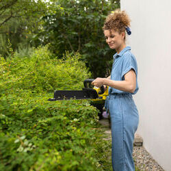 A Kärcher HGE 3-18 Battery Set akkumulátoros sövényvágó szettel a sövénynyírás gyerekjáték. A fogantyú 180°-ban elforgatható a kényelmes függőleges vágáshoz, így tökéletesen alkalmazkodik a munkakörülményekhez. Az 50 cm-es vágáshossz és a 22 mm-es fogosztású, gyémántköszörült penge mindig precíz és tiszta vágást garantál, a beépített fűrészelő funkcióval pedig a vastagabb ágak sem jelentenek akadályt. Fő előnye a kategóriájában a praktikus nyesedékseprő tartozék és a teljes indulókészlet, amely vízszintes vágáskor a földre tolja az ágakat, a mellékelt akkuval és gyorstöltővel pedig azonnal kezdhető a munka. A pengevédő megóvja a kést a falak mentén, az akasztógyűrű pedig helytakarékos tárolást biztosít. A csomag része a védőburkolat is, amely a nyesedékseprő tárolására is alkalmas.