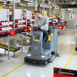 Rövid és vékony kialakításának köszönhetően az akkumulátoros B 110 R felülős súroló-szívógép magas fokú mozgékonyságot és manőverezhetőséget kínál. Ezek azok az erősségek, amelyeket a gép tökéletesen képes megmutatni sarkokkal rendelkező területeken történő használatakor is. A nagy, 110 literes frissvíz-, és szennyezettvíz-tartályok hosszú üzemidőt tesznek lehetővé. Az időt megtakarító feltöltéshez vagy a mélytisztításhoz a készülék az Auto Fill funkciót és az automatikus tartályöblítő rendszert is tartalmazza alapfelszereltségként. A standard Dose tisztítószer-adagoló rendszer, valamint a sebességtől függő vízadagolás biztosítja az erőforrások megtakarítását. A két tárcsás kefe és a hozzájuk tartozó súrolófelület, amely meghosszabbítja a 75 centiméteres munkaszélességet még 10 centiméterrel, lehetővé teszi a szélek közelében történő tisztítást is, és amely ráadásul a fali érintkezéskor a sérülések elkerülése érdekében a gép alá könnyedén visszahúzódik, hogy azután továbbra is kiváló tisztítási eredményeket biztosítson az Ön számára. A gép beépített akkumulátortöltővel, a mi modern, Kärcher Fleet flottamenedzsment-rendszerünkhöz való csatlakozással és egy nagy, 30 nyelven használható színes kijelzővel is rendelkezik.