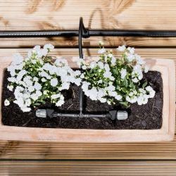A teraszokra alkalmas Kärcher öntözőkészlet a Kärcher Rain System® része, és tökéletesen akár 15 növény hatékony öntözésére is alkalmas. Az edényeket és az ablakpárkányon elhelyezkedő ládákat a tömlőrendszer és a csepegtető segítségével kényelmesen lehet öntözni. A vízmennyiséget minden cseppentőn külön-külön lehet szabályozni, így a növények szükséglet-alapú öntözése a víz pazarlása nélkül lehetséges. 10 m rugalmas, 1/2 "tömlőt (beleértve a G3 / 4 sárgaréz csap adapterét G1 / 2 szűkítővel és tömlő csatlakozóval a csaphoz való csatlakoztatáshoz) használható a vízellátáshoz. A vékony tömlő (10 m-rel együtt) a hüvelyekkel (10 tartozék) az integrált tűnek köszönhetően szerszám nélkül csatlakoztatható a Kärcher Rain System® tömlőhöz. A cserepek öntözése csepegtetőkkel történik (15 tartozék), amelyeket földi tüskékkel lehet rögzíteni (15). A tömlőcsatlakozók (3 kicsi, 1 nagy) a tömítéshez és a T-csatlakozók (10 tartozék) a tömlők csatlakoztatásához szintén adottak. A rendszer szükség szerint kibővíthető a Kärcher Rain System® vagy a SensoTimer eco!ogic termékekkel a hatékony öntözésvezérléshez.