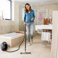 A Kärcher SC 3 EasyFix GNF Edition fekete gőztisztító gyorsan használatra kész, és hatékonyan eltávolítja a vírusokat és baktériumokat kemény felületekről. Az EasyFix padlófej rugalmas csuklóval és lamella-technológiával biztosít ergonomikus tisztítást, a Re!Fibe kendők újrahasznosított poliészterből készülnek, a flexibilis kézi fúvóka pedig a makacs szennyeződéseket is könnyen eltávolítja. Az állandóan tölthető víztartály és a vízkőmentesítő patron megszakítás nélküli, hosszú élettartamú használatot garantál.