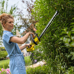 A Kärcher HGE 3-18 Battery Set akkumulátoros sövényvágó szettel a sövénynyírás gyerekjáték. A fogantyú 180°-ban elforgatható a kényelmes függőleges vágáshoz, így tökéletesen alkalmazkodik a munkakörülményekhez. Az 50 cm-es vágáshossz és a 22 mm-es fogosztású, gyémántköszörült penge mindig precíz és tiszta vágást garantál, a beépített fűrészelő funkcióval pedig a vastagabb ágak sem jelentenek akadályt. Fő előnye a kategóriájában a praktikus nyesedékseprő tartozék és a teljes indulókészlet, amely vízszintes vágáskor a földre tolja az ágakat, a mellékelt akkuval és gyorstöltővel pedig azonnal kezdhető a munka. A pengevédő megóvja a kést a falak mentén, az akasztógyűrű pedig helytakarékos tárolást biztosít. A csomag része a védőburkolat is, amely a nyesedékseprő tárolására is alkalmas.