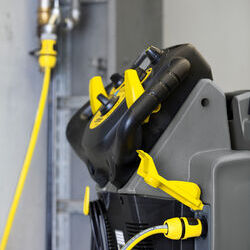 A B 60 W Bp gyalogvezetésű súroló-szívógép vontatóhajtással, karbantartást nem igénylő 170 Ah-s akkumulátorral és KIK kulcsrendszerrel kényelmet, valamint könnyű és biztonságos kezelhetőséget biztosít. A KIK kulcsrendszer a felhasználókhoz hozzáférési jogokat rendel, így elkerülhető a helytelen működtetés. Az R 65 hengerkefe-fejjel (65 cm munkaszélesség) és az 1200 fordulat/perc kefefordulatszámmal a gép akár 2500 négyzetméteres felületteljesítményig is ideális burkolt padlókhoz. A kefék gyorsan felszerelhetők és cserélhetők. Az eco!efficiency üzemmód óriási mértékben meghosszabbítja az akkumulátor üzemidejét, a tartályöblítő rendszer pedig leegyszerűsíti a szennyezettvíz-tartály tisztítását a padlótisztítás után. Ezenkívül automatikus feltöltési funkció biztosítja a frissvíztartály egyszerű és időtakarékos feltöltését. A 900 milliméter munkaszélességű V alakú szívógerenda pedig gondoskodik a szennyezett víz maradékmentes felszívásáról még kanyarodáskor is.