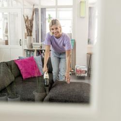 Cserélhető akkumulátorával különösen flexibilis: a CVH 2-4 kézi porszívó mindig használatra kész, és gyorsan rendelkezésre áll számos takarítási feladathoz a konyhában, a nappaliban, a hálószobában vagy a jármű belsejében. Könnyedén eltávolítja az olyan szennyeződéseket, mint a morzsák, a haj és a por. A 2 az 1-ben résfúvóka tisztaságot garantál az érzékeny felületeken és a nehezen hozzáférhető helyeken. A könnyű és kompakt kialakítású porszívó ergonomikus és higiénikus működést tesz lehetővé a szennyeződéssel való érintkezés nélkül. A 2 fokozatú szűrőrendszer biztosítja a távozó levegő tisztaságát. 4 V-os Kärcher Battery Power cserélhető akkumulátor nem része a készletnek. Kompatibilis az összes 4 V-os Kärcher Battery Power készülékkel.
