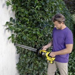 Egy erőmű a tökéletes vágásokhoz: a Kärcher 36 V HGE 36-60 akkumulátoros sövényvágó. A kétfokozatú fordulatszabályozásnak köszönhetően felhasználóként választani lehet a maximális sebesség és a maximális teljesítmény között az aktuális feladathoz mérten. Fűrész funkciója a vastagabb ágak vágását teszi lehetővé. A 180 ° -ban forgatható fogantyúnak köszönhetően munkavégzés közben nem fárad a felhasználó karja és a válla sem. Másik praktikus jellemzője: a seprő, ami biztosítja, hogy a sövénydarabok egyszerűen a földre hulljanak, ne pedig a sövénybe essenek. A lézervágott, gyémántcsiszolt pengéje mindig rendkívül pontos vágási eredményeket biztosít. A kiegészítő pengevédő megvédi a pengét is a sérülésektől. A beépített emelőszem helytakarékos fali tárolást tesz lehetővé. A sövénynyíró egy blokkolásgátló rendszerrel is rendelkezik, így megszakítás nélküli munkavégzést tesz lehetővé.