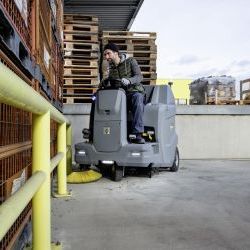 Extrém strapabíró és kényelmes, kibocsátás nélkül: a KM 100/200 R Bp felülős seprőgépünk. Erős, 240 Ah-s akkumulátorral és megfelelő beépített töltővel akár négy órás folyamatos használat is lehetséges - főként a kifejezetten poros belterekben. A gép és a bútorzat sérülésmentessége érdekében a seprű oldalsó keféje forgatható, a sebessége pedig állítható a porzás minimalizásához. A függesztve rögzített seprőhengerrel kiváló seprési eredményt lehet elérni, a próbáknak és teszteknek is alávetett szűrőrendszer pedig hat négyzetméternyi szűrőfelületének és az automatikus tisztításának köszönhetően a pormentes takarítás mindenkor biztosítva van, még nagy por esetén is. A hidraulikus magas tartályürítés a hatalmas szennyeződéstartály kényelmes ürítését teszi lehetővé. Felhasználóbarát kialakítása magába foglalja az állítható vezetőülést, amely remek kilátást nyújt, valamint az irányítóberendezések könnyű és egyszerű elérhetősége. A könnyedén karbantartható KM 100/200 R utólagosan felszerelhető opcionális védőtetővel vagy porszívótartó résszel rendelkezik, a személyreszabás érdekében.