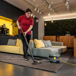 Erős, 850 W-os motorjának köszönhetően, a kompakt T 7/1 Classic száraz porszívó lenyűgöző, 23,5 kPa vákuumot állít elő. Ennek ellenére, a porszívó halkan 62 db(A)-n működik. A készülék 2 méteres szívótömlővel rendelkezik és rendkívül könnyű, súlya mindössze 3,5 kg. Az ergonomikus könyökcső erőfeszítés nélküli munkavégzést biztosít. Ez a porszívó kettő fix kerékkel és kettő bolygókerékkel rendelkezik, a kiváló irányíthatóság érdekében. A körbefutó ütköző megakadályozza, hogy az ütésálló 7,5 literes tartály károsítsa a bútorokat vagy más cikkeket. A T 7/1 Classic flíz szűrővel rendelkezik.