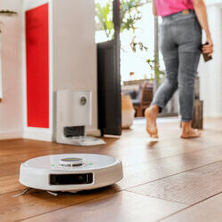 A Kärcher RCV 5 Comfort robotporszívó a mesterséges intelligenciát és a dual-lézer kamerarendszert ötvözi a biztonságos takarításhoz, akadályok, például kábelek vagy cipők elkerülésével. Forgókefék, oldalkefék és erős ventilátor gondoskodnak a száraz szennyeződések hatékony összegyűjtéséről, az ultrahangos szőnyegérzékelő automatikusan aktiválja az erős szívóerőt a szőnyegeknél. Nedves felmosásra is alkalmas, ilyenkor a szőnyegeket automatikusan elkerüli. LiDAR alapú környezeti érzékeléssel helyiségtervet készít, amely az alkalmazásban személyre szabható. A készülék alkalmazással, előre beállított ütemterv szerint vagy gombnyomással indítható, hangjelzéssel értesít problémák esetén. A feladat végeztével vagy szükség szerint automatikusan visszatér a töltő- és önürítő állomásra.