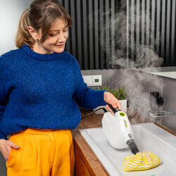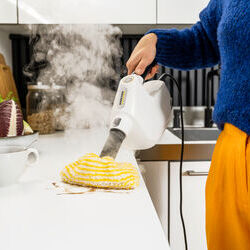 A Kärcher SC 1 Multi kompakt kézi gőztisztító vegyszermentesen tisztít és pillanatok alatt készen áll a mélytisztításra. 30 másodperc alatt felfűt, és könnyen újratölthető. A gőztisztító technikai különlegessége a kivehető víztartály és a cserélhető vízkőmentesítő patron, amely ötször hosszabb élettartamot biztosít a készüléknek. Az LED fénykijelző és a vezérlőpanel egyszerű kezelést tesz lehetővé, folyamatosan jelezve a fűtés, a készenlét vagy a patroncsere állapotát. Ez a modell innovatív 4 az 1-ben gőztisztítóvá bővíthető, így a felhasználási lehetőségek szinte korlátlanok.